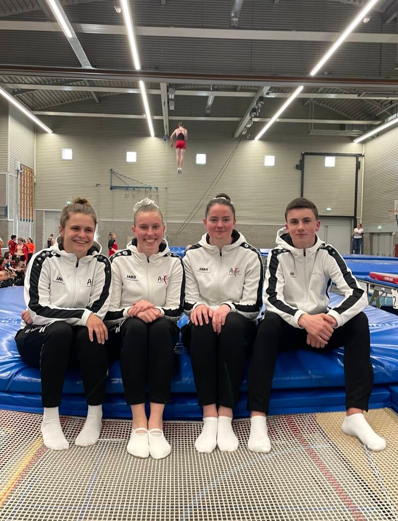 In de senior dames klasse spongen Jet Hindriks en Dewi Boijenga hun oefeningen prima uit. Deze klasse is enorm groot en heeft een sterk deelnemersveld. Marjolein Dijkman bleek hier goed tegen opgewassen en wist met een prachtige oefening 3e te worden in de voorronde. Bijzonder knap in deze grote klasse! In de finale ging het helaas net wat minder en werd ze uiteindelijk 5e. Door deze prachtige prestatie heeft ze zich inmiddels gekwalificeerd voor het NK.